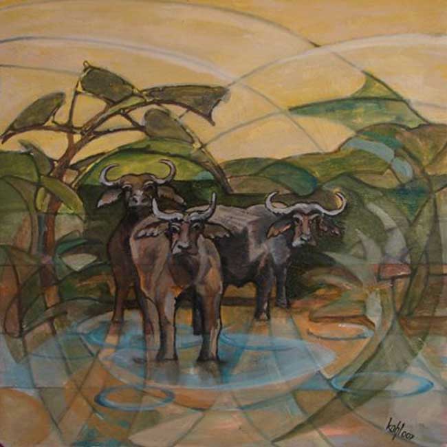 ‘buffalo herd’ . 2006 . oil on board . 685 x 685 . unframed
