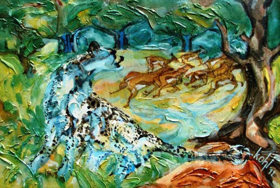 ‘cheetah hunt’ . 2011 . oil on board . 680 x 972 . unframed