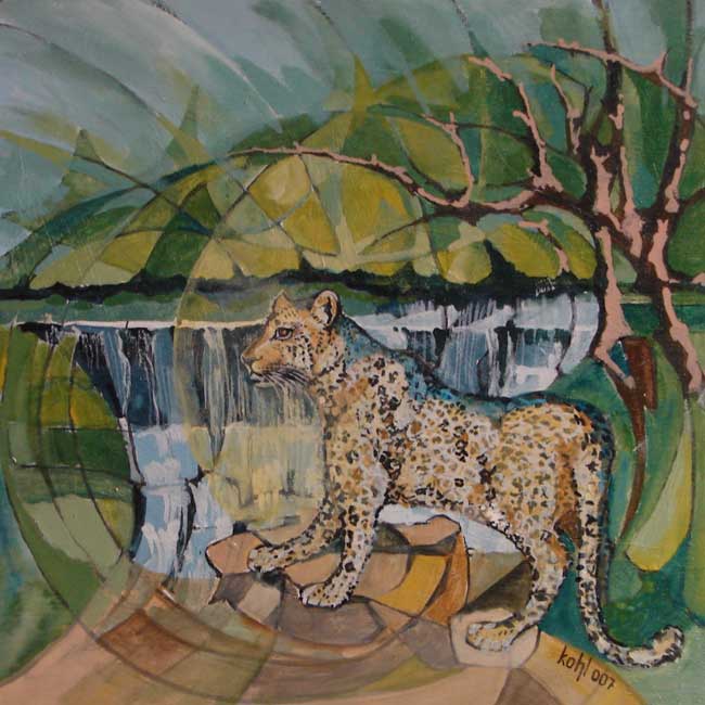 ‘leopard at waterfall’ . 2007 . oil on board . 685 x 685 . SOLD