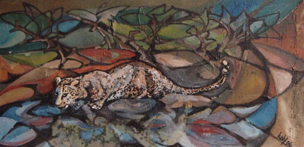 ‘leopard drinking’ . 2006 . oil on board . 972 x 472 . SOLD